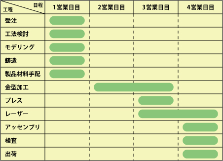 社内一貫加工の強みも活かし、小物(手のひらサイズ)のブラケット類であれば3~4日での納入も可能。